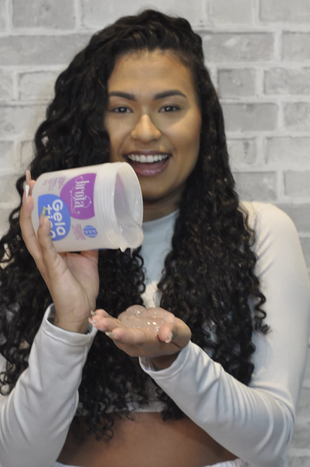 Com os cabelos limpos e úmidos, aplique a Gelatina Cachos Definidos Brota mecha a mecha, distribuindo uniformemente. Desembarace com um pente de dentes largos e amasse os cachos das pontas à raiz. Não enxágue.